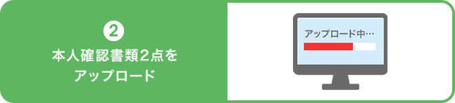 本人確認書類は、2点提出が必要となります。アップロードする前にご確認ください。