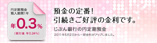2011年5月2日(月)から預入期間1年の円定期預金金利をアップしました。