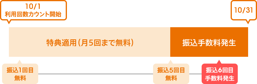 au ID登録月の振込手数料無料回数は、「5回」から「au ID登録前の振込利用回数」を差引いた回数となります。