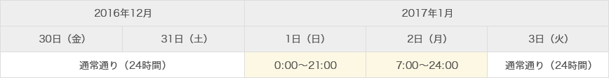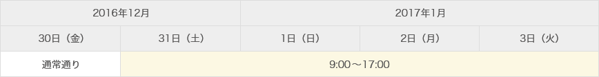 | 2016年12月27日(火)17時以降に完了 | 年明け(2017年1月4日(水)以降)に対応 |