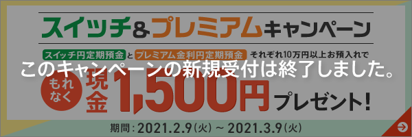 - 景品発送時点で、円普通預金口座を解約されているお客さまは本キャンペーンの対象外とさせていただく場合がございます。