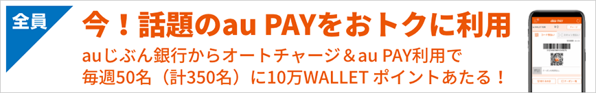 2. auじぶん銀行行名変更記念 毎週50名さまに10万WALLET ポイント!チャージ&au PAY利用であたるキャンペーン