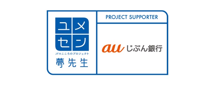 JFAこころのプロジェクト(以下 本プロジェクト)は、JFAが子どもの心身の健全な成長に寄与することを目的に2006年2月に立ち上げたプロジェクトです。さまざまなトップアスリートが「夢先生」として小中学校を訪問し、「夢の教室」という授業を通して、「フェアプレー精神」や「夢を持つことの素晴らしさ」、「それに向かって努力することの大切さ」、「失敗や挫折に負けない心の強さ」を子どもたちに伝えます。auじぶん銀行は本プロジェクトの趣旨に賛同し、本年度より協賛を開始しました。