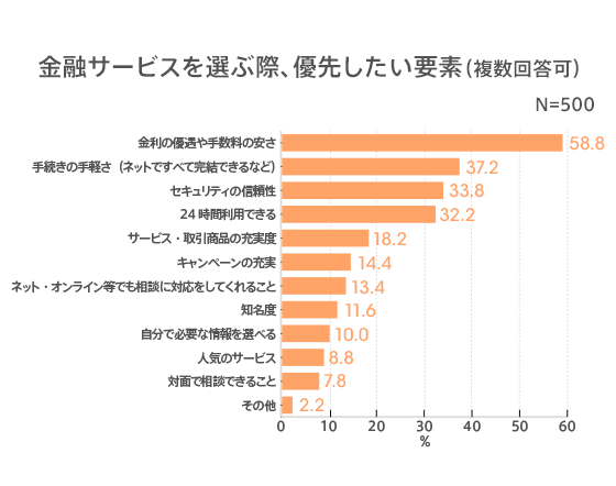 金融サービスの優先ポイント 1位は「金利の優遇や手数料の安さ」