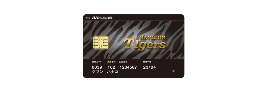 auじぶん銀行アプリやウェブサイトから口座を開設いただく際に、通常デザインか阪神タイガースデザインをお選びいただけます。すでに口座をお持ちのお客さまもデザインを変更することが可能です。