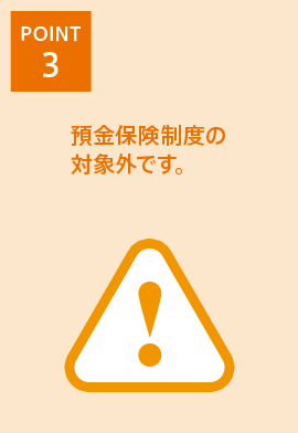 - 金融商品仲介業務等における取扱商品は預金ではないため、預金保険制度の対象ではありません。また、当社が元本を保証するものではありません。