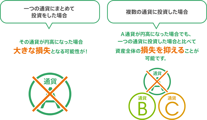 動きが異なる複数の通貨を組合わせることが、リスクを軽減するポイントです。