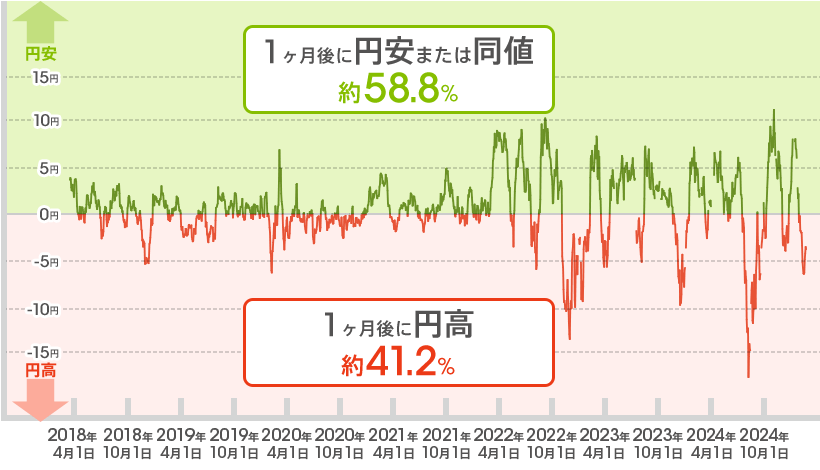 - 円での払戻しとなった場合、実勢為替レートが特約レートより円安であった場合でも、そのメリット(為替差益)を享受することができません。
