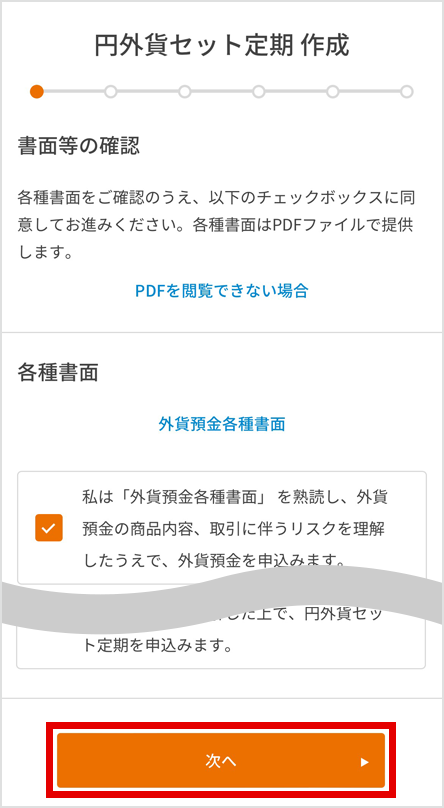 各種書面を確認後、[次へ]を押下