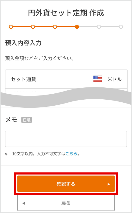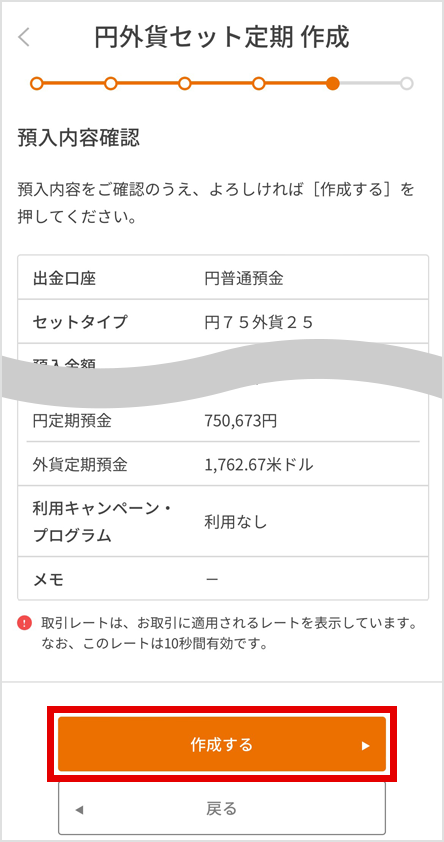預入内容を確認し、[作成する]を押下