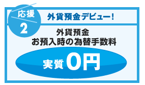 外貨預金には為替変動リスクがあります。外貨預金の預入時(円→外貨)より払戻時(外貨→円)の為替相場が円高になる場合、または為替相場にまったく変動がない場合でも、往復の為替手数料(1米ドルまたは1ユーロあたり50銭、1豪ドルあたり1円、1中国元または1ランドあたり40銭、1レアルあたり1円80銭、100ウォンあたり40銭、1NZドルあたり80銭)がかかるため、払戻時の円換算額が、預入時の円貨額を下回る(円貨ベースで元本割れとなる)可能性があります。また、中国元、レアル、ウォン、ランドは各政府の通貨政策や市場環境の変化などにより、流動性の低下、市場機能の低下および規模の縮小の可能性があり、為替レートが大幅に変動するリスクやお取引を停止する場合があります。お申込前に必ず重要事項説明をご覧ください。