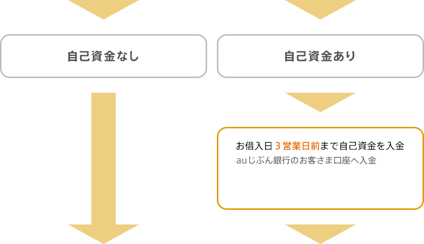 - 本審査承認後または最終意思確認後であっても、本審査承認までにお届けいただいた内容に相違があることが判明した場合や、auじぶん銀行の住宅ローンをお申込みいただけるお客さまでないことが判明した場合は、お申込みにかかるご融資をお断りさせていただきます。また、本審査承認までにお届けいただいた内容に変更があることが判明した場合や、お客さまの借入状況その他の信用状況について本審査承認前の状況から変動があることが判明した場合も、お申込みにかかるご融資をお断りさせていただく場合があります。