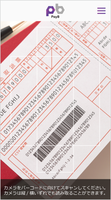 PayBとは、コンビニ払込票に印字されたバーコード等をスマートフォンのカメラ機能で読み込むだけで、いつでもどこでも簡単にお支払いができる決済アプリです。