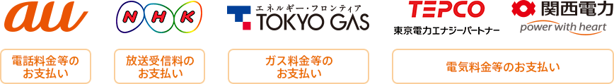 電気料金やKDDI株式会社の携帯電話料金等、PayBマーク、またはPayBの記載のある払込票のお支払いが可能です。